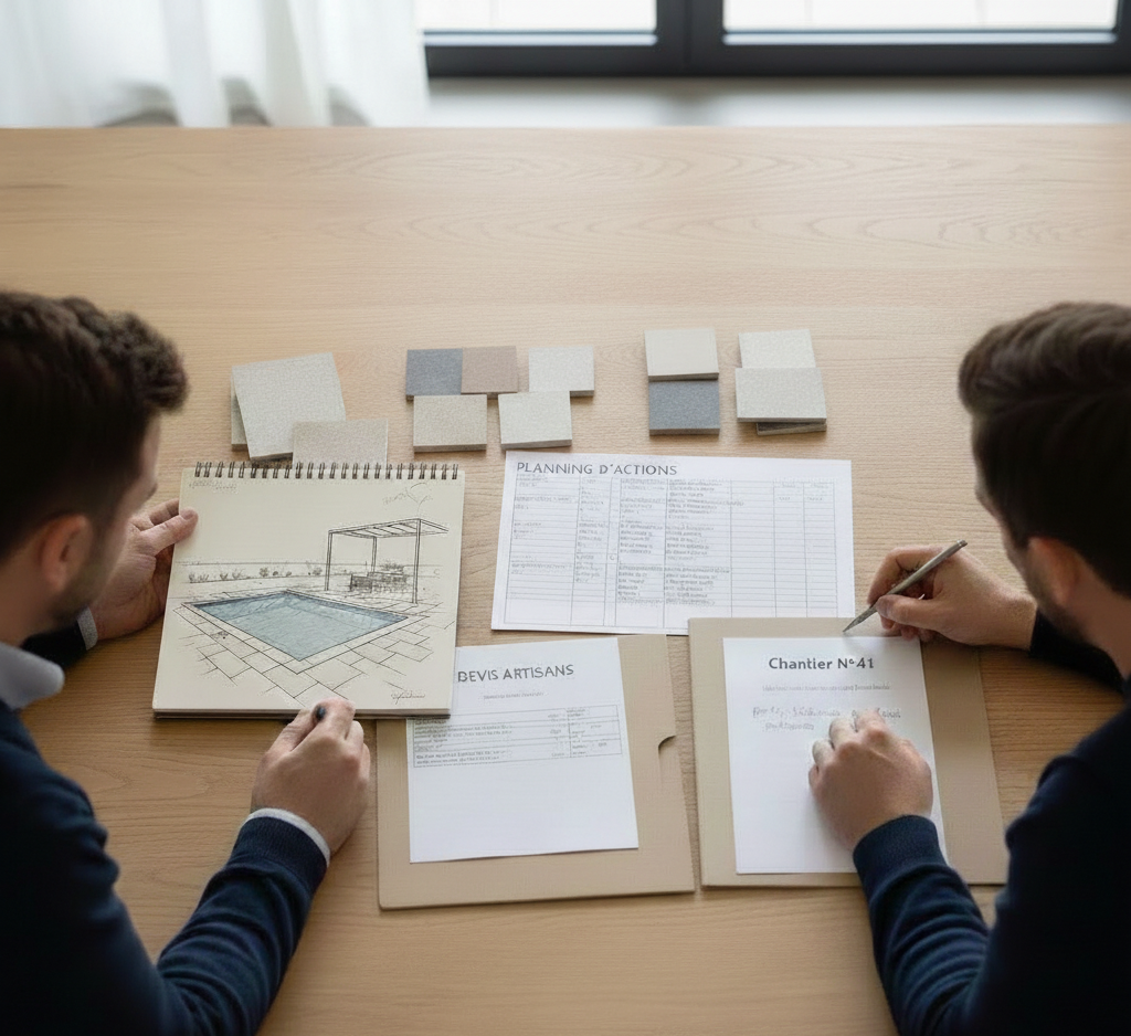 C’est à partir de ce déclic que nous avons transformé notre conviction en action concrète. Maîtrise & Signature n’est pas seulement une idée, c’est un engagement opérationnel : organiser, coordonner et sécuriser chaque étape du projet pour que toutes les parties avancent dans le même sens.Chaque chantier devient ainsi un projet clair et structuré : nous identifions les priorités, anticipons les contraintes, et mettons en place les solutions les plus adaptées, sans jamais laisser la complexité ou la charge mentale freiner le déroulement des travaux. Clients et artisans trouvent un interlocuteur unique, capable de relier les besoins, les délais et les budgets avec fluidité et transparence.Cette approche se décline dans chacun de nos services : du courtage à l’AMO, en passant par la coordination technique et la gestion administrative. Pour découvrir concrètement comment nous intervenons à chaque étape et comment nous facilitons vos projets, explorez notre page "Nos services"