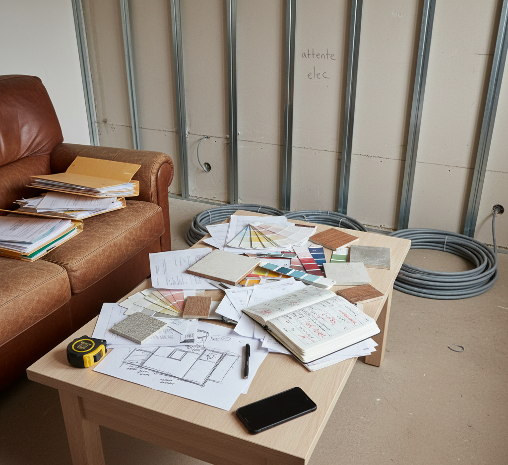 Sur le terrain, nous avons fait un constat simple : de nombreux clients abordent leur projet de travaux avec peu de repères. Les informations sont fragmentées, les produits mal connus, certaines idées ne sont pas toujours adaptées aux contraintes réelles du chantier — ou pourraient être nettement améliorées. À cela s’ajoute la difficulté de devoir multiplier les déplacements entre différents fournisseurs et magasins, sans toujours savoir vers quelles solutions se tourner.Ces situations génèrent des frustrations récurrentes. Les projets sont rarement pensés dans leur globalité, l’usage quotidien et le côté pratique sont parfois négligés, et les idées préconçues prennent le pas sur une réflexion technique cohérente. La communication entre les corps de métier est souvent insuffisante, tandis que les délais fournisseurs et la disponibilité des artisans sont mal anticipés, créant incompréhensions et retards.C’est de cette réalité qu’est née notre volonté de proposer une autre approche. Une approche qui relie l’ensemble des acteurs du chantier — clients, artisans et fournisseurs — pour apporter une vision globale, claire et structurée du projet. Notre rôle est d’aider à la prise de décision, sans jamais imposer de choix, en mettant en avant des artisans qualifiés et des partenaires de confiance. Nous accompagnons chaque projet avec une seule ambition : permettre à nos clients de concrétiser leurs travaux de la manière la plus fidèle possible à leurs attentes, dans un cadre maîtrisé et serein.